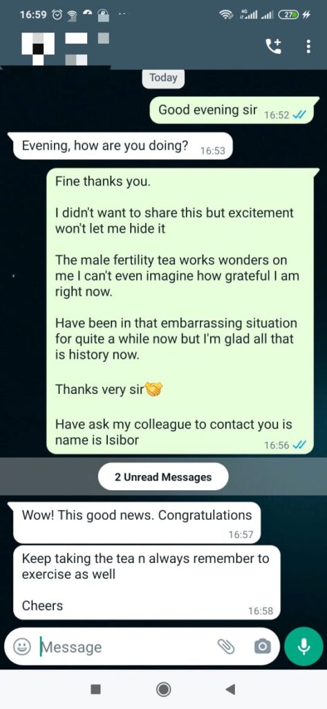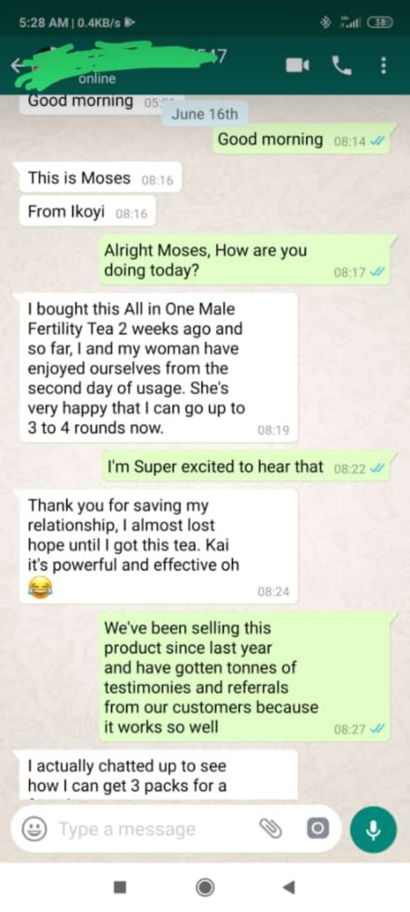 My husband had some issues which made me believe he had a low sperm count. He does not like doctors and would not go get checked out to see if that was the issue. He is a very natural person and would not do or take anything that wasn’t of natural ingredients. I did some research and started reading about Ashwagandha which was the only thing in this tea he’s never drank in a tea before. He drinks it twice a day and we use one tea bag 3 times before throwing it away. Two tea bags left in our first box and we find out I’m 4 weeks pregnant.